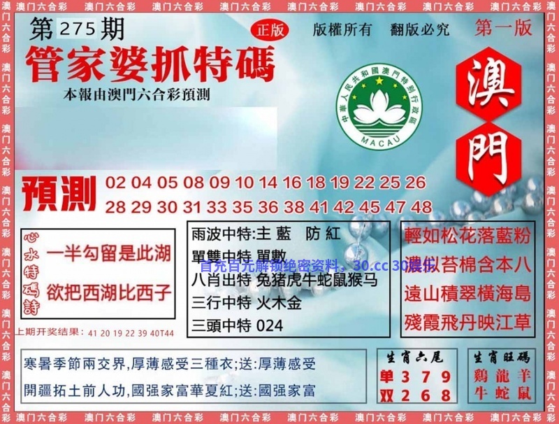275期:稳一波两头【绿波+3.4头】开鸡45准 |