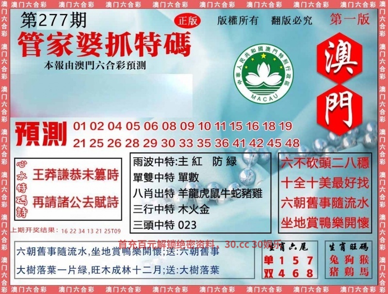 277期:澳门三头【1头.3头.4头】开虎16准 |