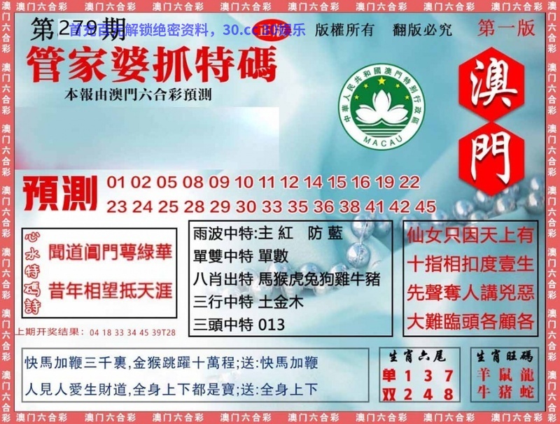 279期:澳门三头【0头.2头.3头】开兔27准 |
